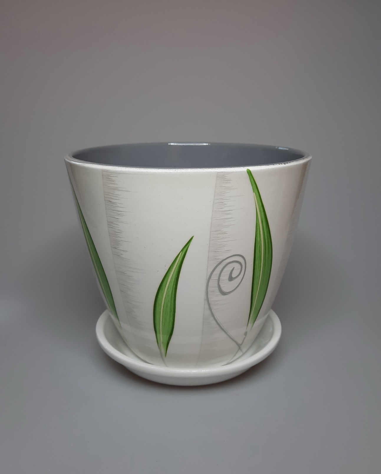 Горшок цветочный Роспись Бутон мотив зеленый 350