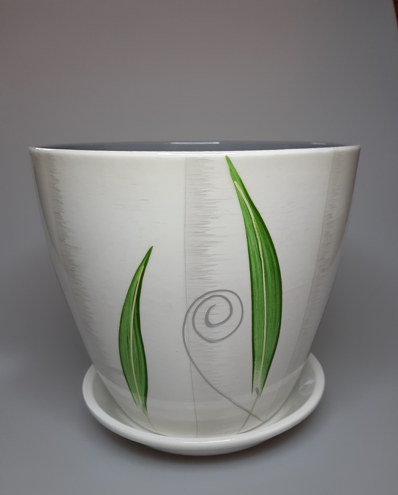 Горшок цветочный Роспись Бутон мотив зеленый 450