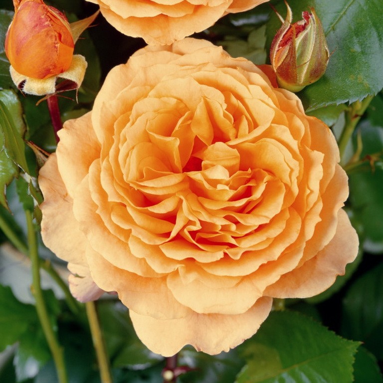 Роза Бельведер (модерн шраб) - известная своими крупными (10-12 см) густомахровыми цветками насыщенного оранжево-персикового цвета, которые долго держатся, устойчивы к жаре и дождю, имеют терпкий пряный аромат и образуют прекрасный контраст с темно-зеленой глянцевой листвой; куст сильный, прямостоячий (100-150 см), обильно цветет волнами с лета до осени и хорош в групповых посадках, но требует внимания к зимовке и вентиляции.
