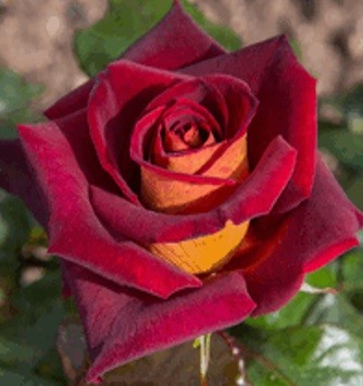 Цветки бархатисто-красные, позднее почти черные, с золотисто-желтой изнанкой. Аромат легкий или отсутствует. Цветки бокаловидные, состоят из 30-35 лепестков, формируются обычно по одному на цветонгосе. Куст ветвистый, средней высоты. Лучше сажать на место, где преобладает утреннее или вечернее солнце. Характеризуется высокой устойчивостью к заболеваниям. Высота куста: 50-60 см