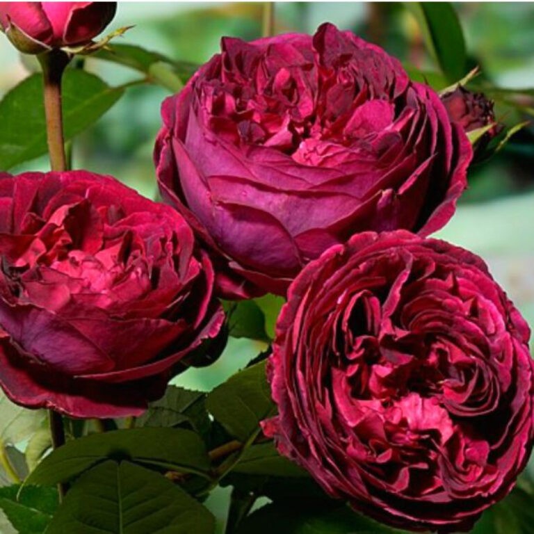 Высота куста: 120-150 см. Диаметр куста: 70-80 см. Диаметр цветка: 10-12 см. Ароматический сорт! Цветки источают яркий и насыщенный аромат розового масла. В начале цветения лепестки имеют темный пурпурно-красный оттенок, при распускании постепенно меняя цвет на глубокий пурпурный. Цветки густомахровые, образуют бутон ностальгической розетковидной формы, иногда может проявляться квартированная серединка. Цветки формируются по 3-5 на цветоносе. Цветение обильное и продолжительное, сорт способен давать до 3 волн цветения за сезон. Взрослый куст ветвистый, пышный, преимущественно прямостоячий. Листва плотная, глянцевая, сорт хорошо устойчив к заболеваниям, однако в конце лета желательно провести профилактику черной пятнистости.