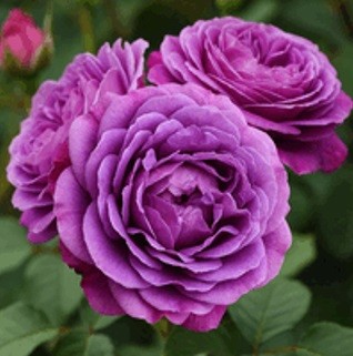 Удивительная окраска! Лепестки насыщенно-фиолетового цвета собраны в махровые бутоны, которые закладываются по 3-5 на стебле. Куст средней высоты, обильно облиственный и ветвистый. Растение обладает очень хорошей устойчивостью к грибковым заболеваниям. Цветение обильное и продолжительное: отцветшие бутоны сменяются новыми. Аромат интенсивный, очень сладкий, яркий.