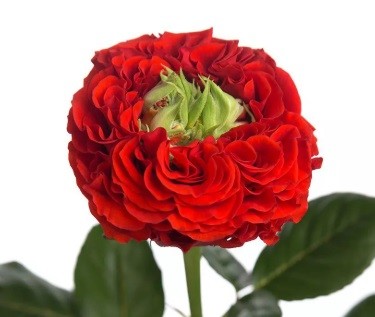 Расцветка красно-оранжевая, но в процессе цветения может меняться на 3 полутона (от темно-красного, до оранжево-лососевого). Бутон держится до 3 недель. Цветок крупный, шаровидной формы, лепестки гофрированы. Но самая красивая серединка, которая зеленой звездочкой расположилась в центре бутона. Имеет легкий ненавязчивый аромат. Цветение обильное, с короткими перерывами. Рекомендуется проведение профилактики заболеваний во второй половине лета.