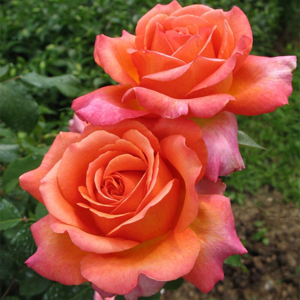 Высота куста: 60-80 см. Диаметр куста: 50 см. Диаметр цветка: 13-15 см.Сильный фруктовый аромат с нотками абрикоса, персика, манго, грейпфрута, липового цвета. Сильнорослый куст с крепкими прямыми побегами. На стеблях формируется от одного до трёх объёмных чашевидных цветка. Розы умеренно махровые, насчитывают 17-25 лепестков. Когда роза начинает раскрываться, бутон окрашен в оранжево-мандариновый тон. По мере созревания цветовая гамма обогащается лососевым, нежно-розовым, алым оттенками. Хорошая болезнеустойчивость и стойкость к дождям.