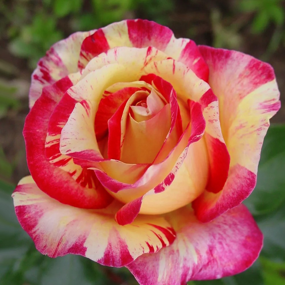 Высота куста: 80-115 см. Диаметр куста: 55-65 см. Диаметр цветка: 8-9 см. Уникальная окраска и аромат яблока! Крупные бокаловидные бутоны невероятной окраски! На фоне пастельного желтого сотни тонких пурпурных, розовых штрихов и розовый румянец на краях лепестков. Аромат запоминающийся с нотами яблока и розового масла. Растение сильнорослое с красивой здоровой листвой и хорошей устойчивостью к болезням.