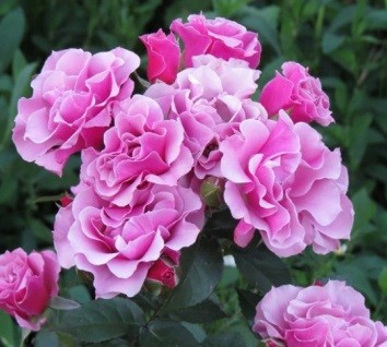 Сильный и компактный куст практически без шипов. Формирует соцветия-букеты розово-лилового цвета с волнообразным лепестком, до 30 цветов в каждом. Цветение обильное, длительное, подходит для срезки и сохраняется до 15 дней, не осыпаясь. Относительно устойчива к грибковым заболеваниям, однако во второй половине лета требует проведения профилактических обработок против черной пятнистости. Очень устойчива к дождям и ветру. Отлично подходит для массовых посадок.