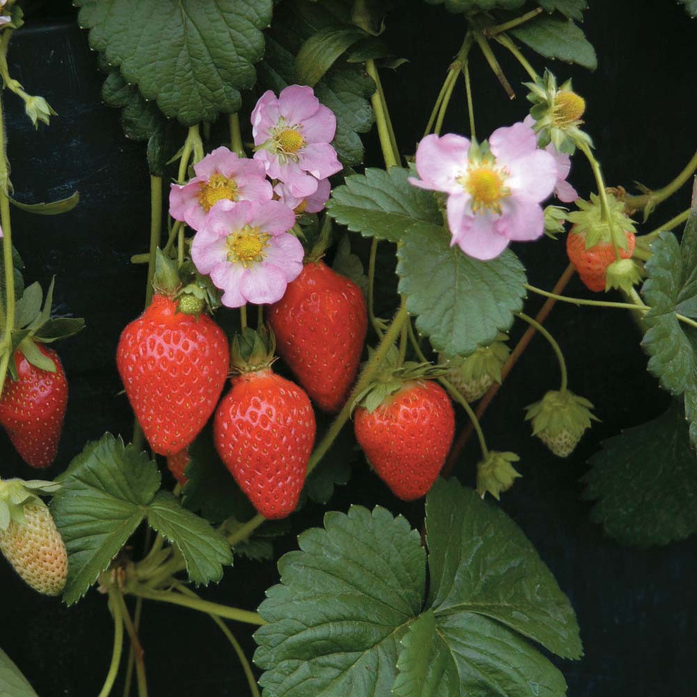 Новинка! Сорт проходит испытание в нашем питомнике. Селекционерами заявлено одновременное формирование более 10 цветоносов, на каждом из которых развито не менее 7–12 цветков. Растение формирует крупные ягоды с вкусной мякотью, средняя масса ягод 18–20 г. Вкус плодов сладкий с лёгким, чуть кислым, послевкусием. Саженцы имеются в питомнике в ограниченном количестве!