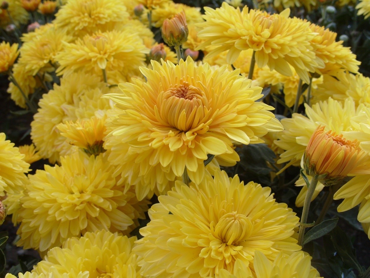 Опал - корейский сорт низкорослых хризантем, достигающих в высоту всего 40-60 см. Но декоративные качества из-за этого не страдают. Яркие жёлтые соцветия на стройных стеблях, обрамленные сочными зелеными листьями, очень красиво смотрятся как на клумбе, так и в букетах.