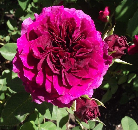 Высота куста: 70-80 см. Диаметр куста: 50-60 см. Диаметр цветка: 6-8 см.Удивительная окраска! Лепестки насыщенно-фиолетового цвета собраны в махровые бутоны, которые закладываются по 3-5 на стебле. Куст средней высоты, обильно облиственный и ветвистый. Растение обладает очень хорошей устойчивостью к грибковым заболеваниям. Цветение обильное и продолжительное: отцветшие бутоны сменяются новыми. Аромат интенсивный, очень сладкий, яркий.