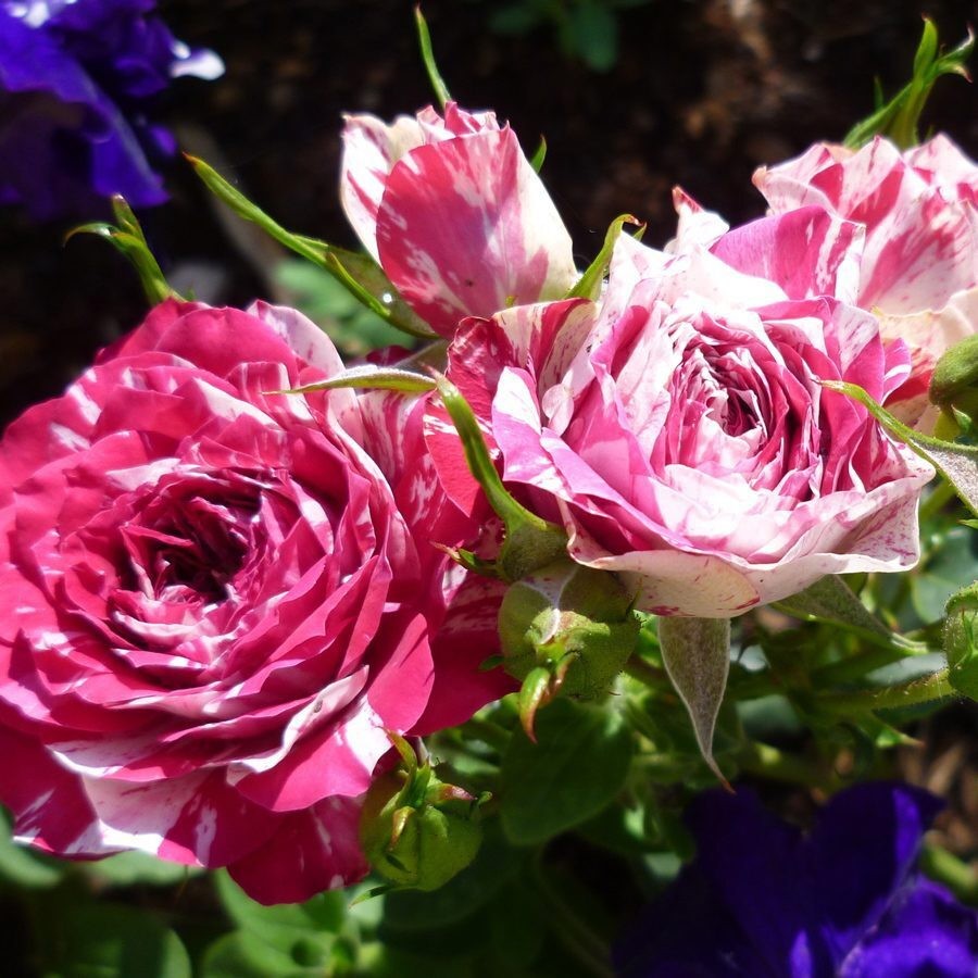 Высота куста: 50-60 см Диаметр куста: 35-40 смБиколор, необычная окраска! Сорт практически без шипов. На ярком цикламеновом фоне сотни аккуратных белых штрихов. На ярком солнце выгорает до нежно-розового и лилового. Длительного цветения. Долго стоит в срезке (до трех недель). Хороша для массовых посадок, лучший вариант для комнатного выращивания в контейнерах и кашпо. Аромат тонкий, романтический, сложный, парфюмерный.