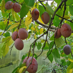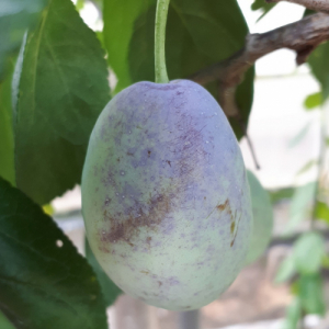 Дерево компактное, зимостойкое, крона пирамидальная. Плоды очень крупные, пурпурно-синие, сочные, вкусные, хорошо хранятся в свежем виде. Косточка хорошо отделяется от мякоти. Сорт позднего срока созревания, урожайный, частично самоплодный.