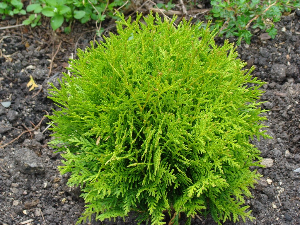 “Danica” (Данника) – совсем миниатюрный шарик (0,5м диаметром) зелёный летом и коричневый зимой. Замечательное украшение альпинариев и каменистых садиков.