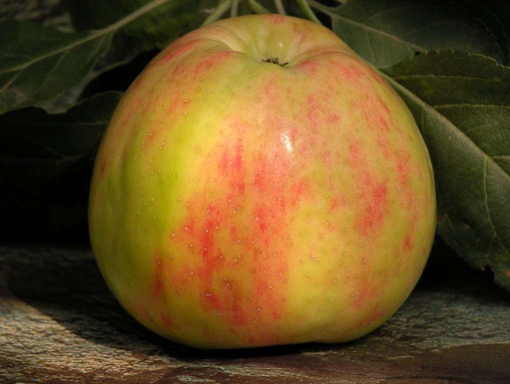 Летнего срока потребления. (Седов Е.Н.). Дерево крупное, быстрорастущее с округлой кроной средней густоты, иммунное к парше, скороплодное. Урожайность высокая. Плоды крупные (180-200г), одномерные, округло-конические, скошенные, сильно ребристые. Кожица гладкая, маслянистая, зеленовато-жёлтая с малиновыми полосками на меньшей части плода. Подкожные точки многочисленные, крупные, зелёные. Мякоть зеленоватая, средней плотности, мелкозернистая, сочная очень хорошего кисло-сладкого вкуса. Созревает в середине августа.