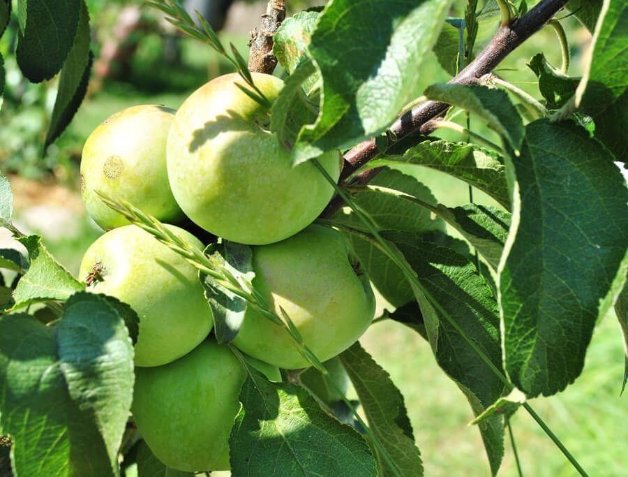 Яблоня колоновидная сорт Сладкое Зеленое. Колонна средней силы роста, устойчива к парше в условиях Московской области. Достаточно зимостойка. Плоды округлой формы, одномерные, 140–150 г. Созревают в конце сентября, хранятся до февраля. Мякоть плодов мелкозернистая, сочная, приятного гармоничного кисло-сладкого вкуса. Кожица тонкая. Дегустационная оценка 4,5 балла.