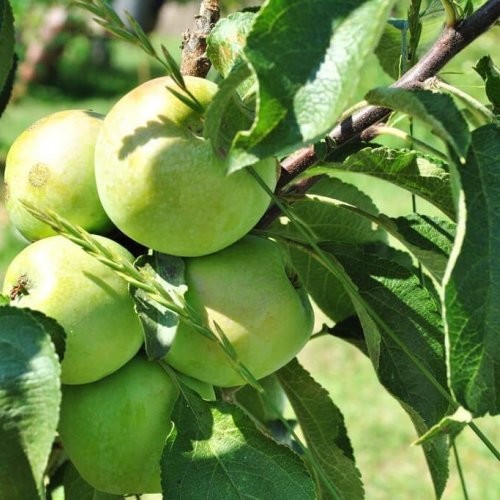 Яблоня колоновидная сорт Сладкое Зеленое. Колонна средней силы роста, устойчива к парше в условиях Московской области. Достаточно зимостойка. Плоды округлой формы, одномерные, 140–150 г. Созревают в конце сентября, хранятся до февраля. Мякоть плодов мелкозернистая, сочная, приятного гармоничного кисло-сладкого вкуса. Кожица тонкая. Дегустационная оценка 4,5 балла.